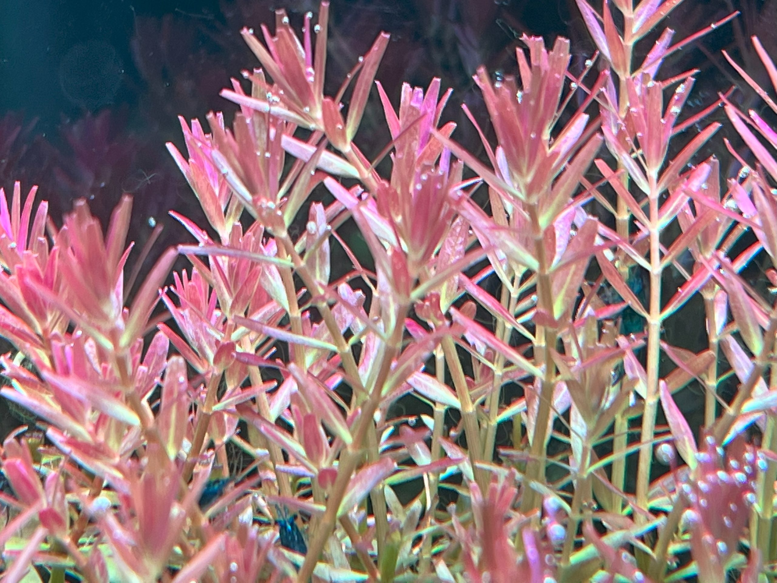 水面に達して5~10cmほど待ってトリミングすることで色味が増します。群生させるのであれば差し戻しを行う方がよいです。脇芽を多く作らずトリミングだけで群生させるのは難しいです。成長速度は早いので躊躇せず半分より下でカットしてください。
